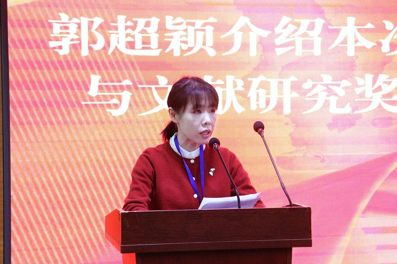 郑敬斌院长为获奖代表颁奖。唐山师范学院郭万青教授作为获奖代表发言。郭万青指出,山东大学“文史见长”的学术传统对自己的治学道路产生了重要影响。他分享了自己在相关领域的研究心得,表示通过参与重大工程项目,拓宽了自身的学术视野,磨练了沉静细致的校勘能力,并直接反哺于个人的研究与教学实践。郭万青衷心感谢了钱先生和评审委员会,表示自己将继续扎根古籍整理研究领域,不断推出新成果。