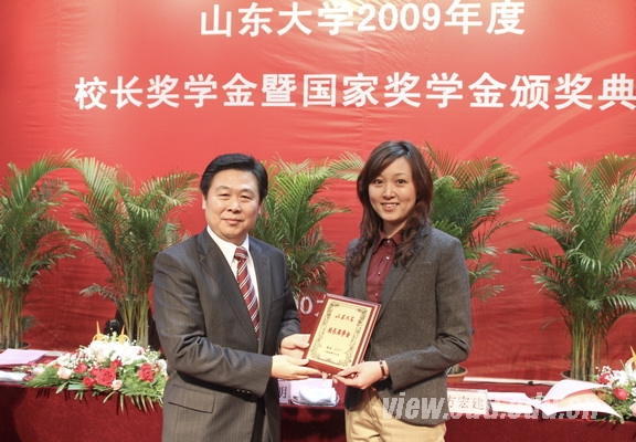 2009年12月29日上午,2009年度校长奖学金暨国家奖学金颁奖典礼在中心校区科学会堂隆重举行。山东大学校长徐显明、校党委副书记方宏建、副校长陈炎等出席颁奖大会。在这次活动中,我院08级博士研究生庄庭兰同学与07级硕士研究生房国友同学获得校长奖学金。