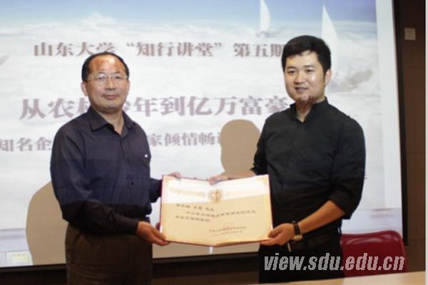 近日,山东大学第5期“知行讲堂”在中心校区举行。唯创国际集团董事长、80后知名企业家王振先生做客“知行讲堂”,为广大师生倾情讲述自己从农村少年向亿万富豪蜕变的心路历程,给大家了带来了一场激情四射的精彩报告。幸运轮盘