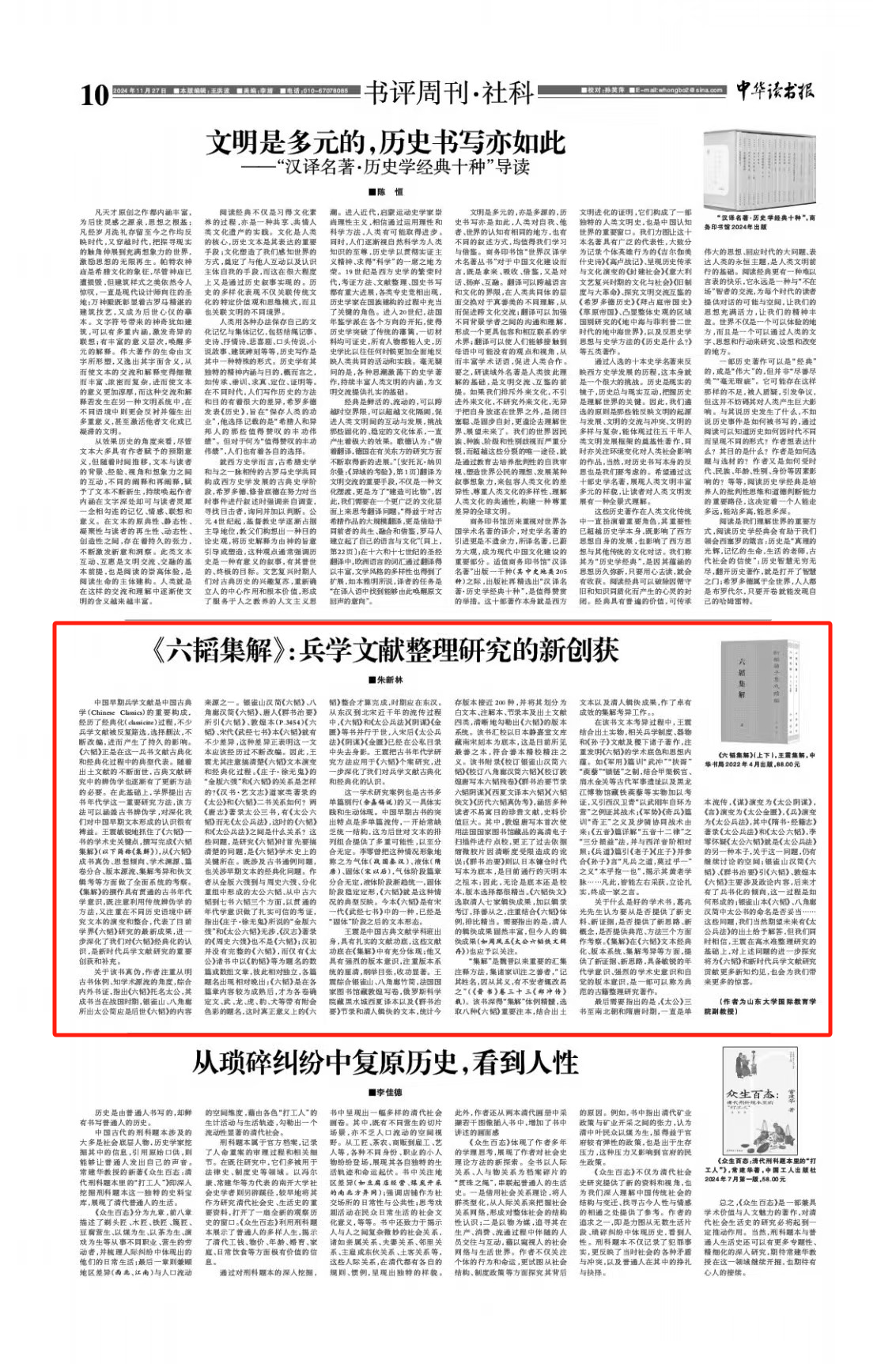 近日,山东大学国际教育学院朱新林副教授以《〈六韬集解〉:兵学文献整理研究的新创获》为题在《中华读书报》(2024年11月27日“书评周刊·社科”版)发文就我院王震副教授之《六韬集解》的学术价值予以集中阐发,再次引起学界热议。此前该著一经出版即已受到广泛关注,曾获全国古籍出版社百佳图书(2022年)二等奖。