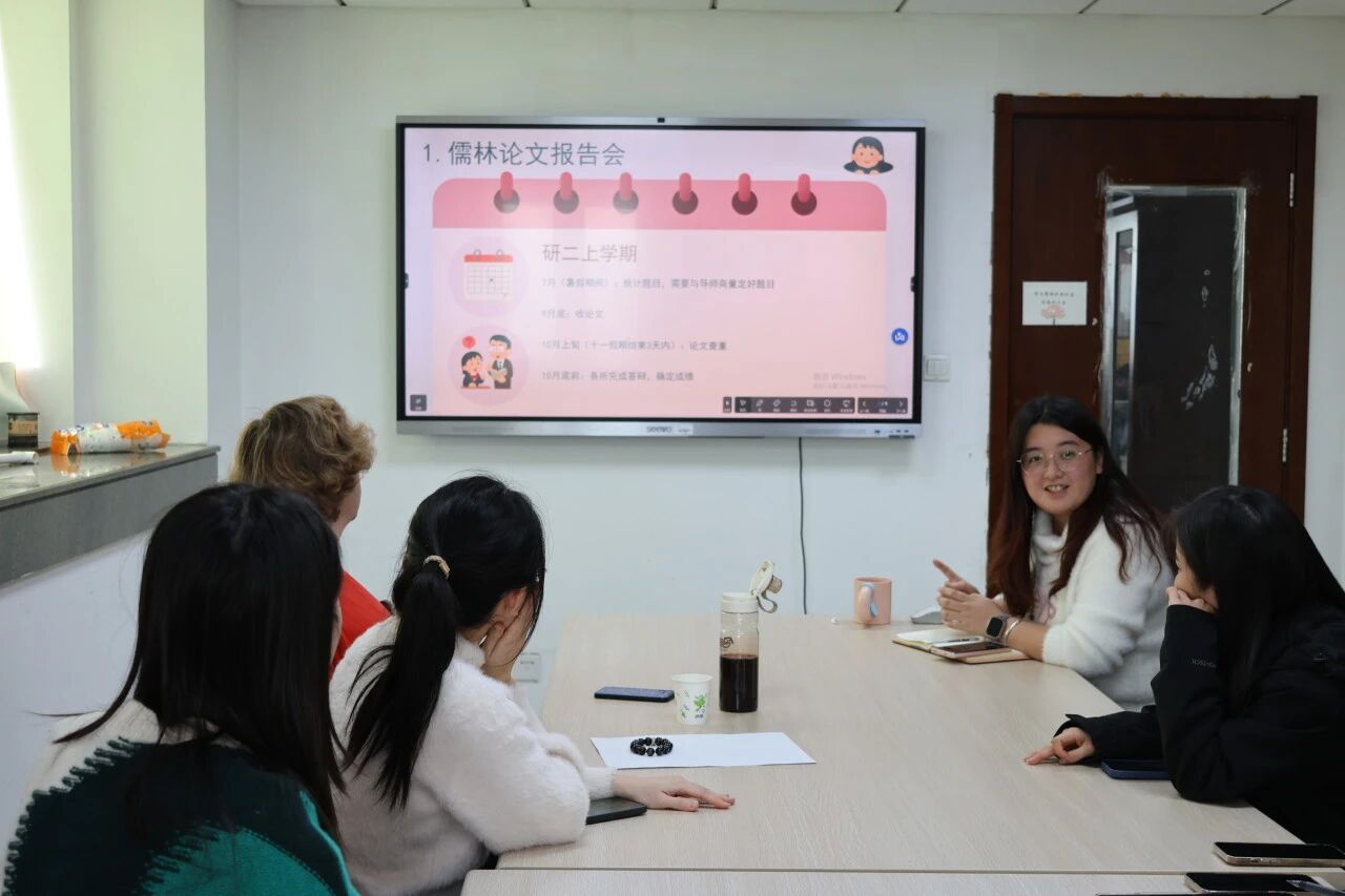 座谈伊始,为加深彼此了解,来自不同文化背景的国际学生们进行了自我介绍。随后同学们结合自身在儒院的学习经历,围绕古文阅读、文献检索、课程跟进等方面展开自由交流并提出相关问题。2023级本科生王一冰同学、2024级硕士王雅荻同学针对大家提出的问题提供了详实的学习建议。