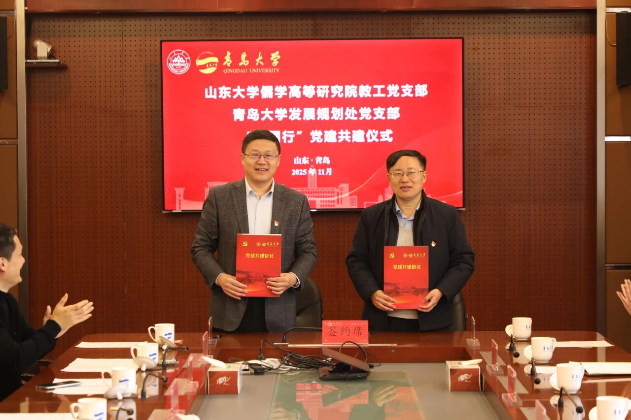 与青岛大学党委发展规划处未来将进一步携手共进,加强党建促发展,共同构建组织互联、资源互通、经验互鉴、发展互促的长效工作机制。马林刚围绕“强化理论武装、推动文化赋能、深化规划协同”三个方面提出共建思路,通过组织共建、活动共联、品牌共创,共同打造学习型、服务型、创新型基层党组织。陈峰表示,将以此次签约共建为契机,围绕“中华优秀传统文化融入大学发展规划”“高校战略谋划与文化传承创新”等主题开展联合研究,推动党建工作与理论学习、学术研究、规划编制有机结合,打造高校基层党建联建新范式。