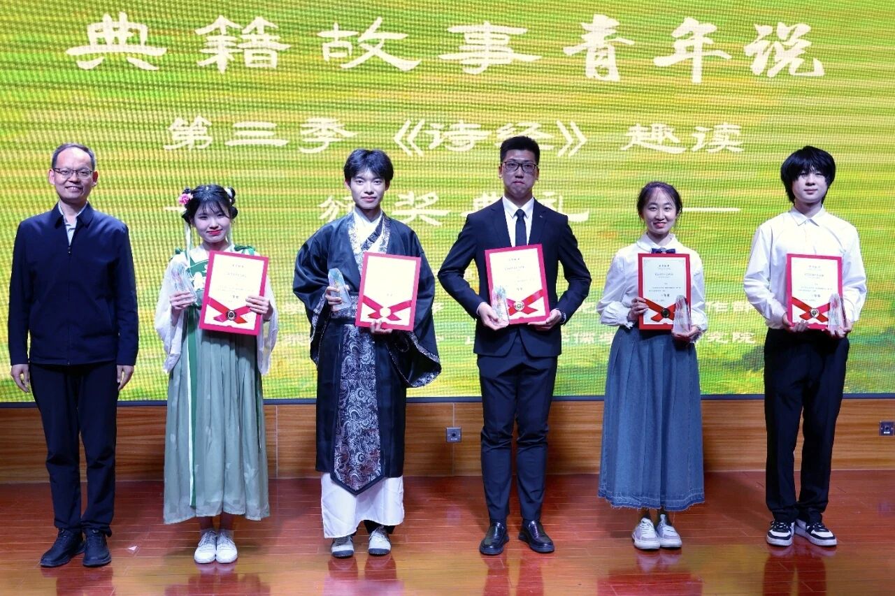 在创新育人方面,学院秉持“以赛促学、以赛促教、以赛促创”理念,激发人文学科青年团员的创新创造活力,大力支持青年学子在国内外高水平竞赛中锤炼本领,多项国家级赛事实现历史性突破。《万卷归程:海外流散典籍回归领航者》项目获中国国际大学生创新大赛(2025)金奖;1名硕士生获第二届全国大学生职业规划大赛就业赛道金奖;2支团队获第二届中国研究生“文化中国”两创大赛全国一等奖,1支团队获全国三等奖;1支博士团队在中央电视台主办的《2025中秋诗会·月映泉城》中获亚军。学院着力推动思政引领与专业成长深度融合,2025年联合多部门主办“典籍故事青年说第三季《诗经》趣读”活动,吸引全校34个学院参与,举办2场“典籍故事名师说”讲座,引导青年学子赓续中华文脉、弘扬中国精神、讲好中国故事,在文脉传承中守正创新,发出新时代青年声音。