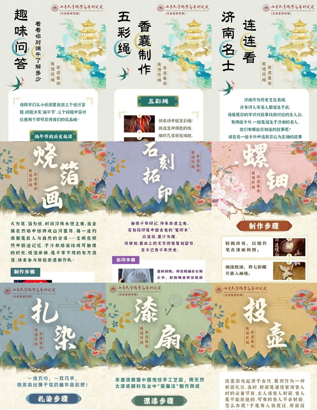 在实践育人方面,学院系统构建特色实践育人大课堂,将学术优势、文化资源转化为服务基层、服务社会的生动实践。通过“中华美德学堂”系列项目,服务历城区群众1500人次;组织学子参与尼山世界文明论坛、“儒家思想与国家治理”会议等志愿服务工作,形成具有学院特色的研究生高层次志愿服务体系;常态化组织尼山学堂学生参与山东电视台“国学小名士”栏目等专业实践;联合山东省图书馆举办“三月三上巳雅集”非遗文化节俗活动;携手地方街道社区学校举办“美德历城・非遗集市”;组织“知行学社”走进文化馆、校园开展志愿服务30余场,在服务社会中助力学生提功力、长见识、塑品格,实现实践育人与文化传播双提升。