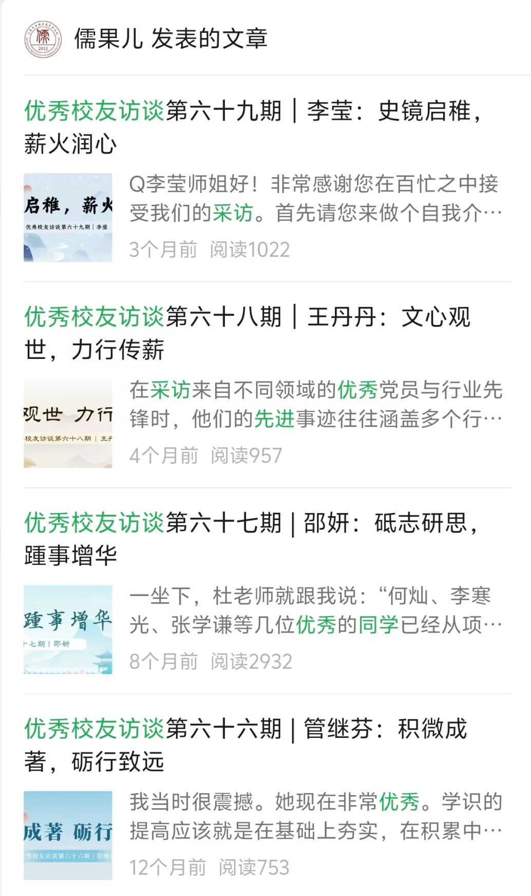 在校友赋能方面,学院针对研究生团员占比高、高年级就业压力大等特点,将优秀校友力量系统引入思政教育、学生成长、职业导航与学术创新等关键环节,切实打通从团员思政引领到青年成才的“最后一公里”。学院持续打造“校友访谈录”“知行讲堂”“校友之声”三大特色栏目,累计开展80余期,以“榜样持续引领、价值持续回响”引导青年团员将理想信念转化为择业观的内在指引,推动校友工作与青年成长、学院发展深度融合,让青春力量扎根祖国大地。